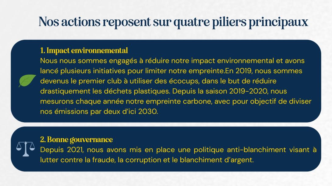 Inspirer nos supporters par le succès sportif sur le terrain, notre lien avec la communauté et notre engagement pour une durabilité à la fois financière et écologique.